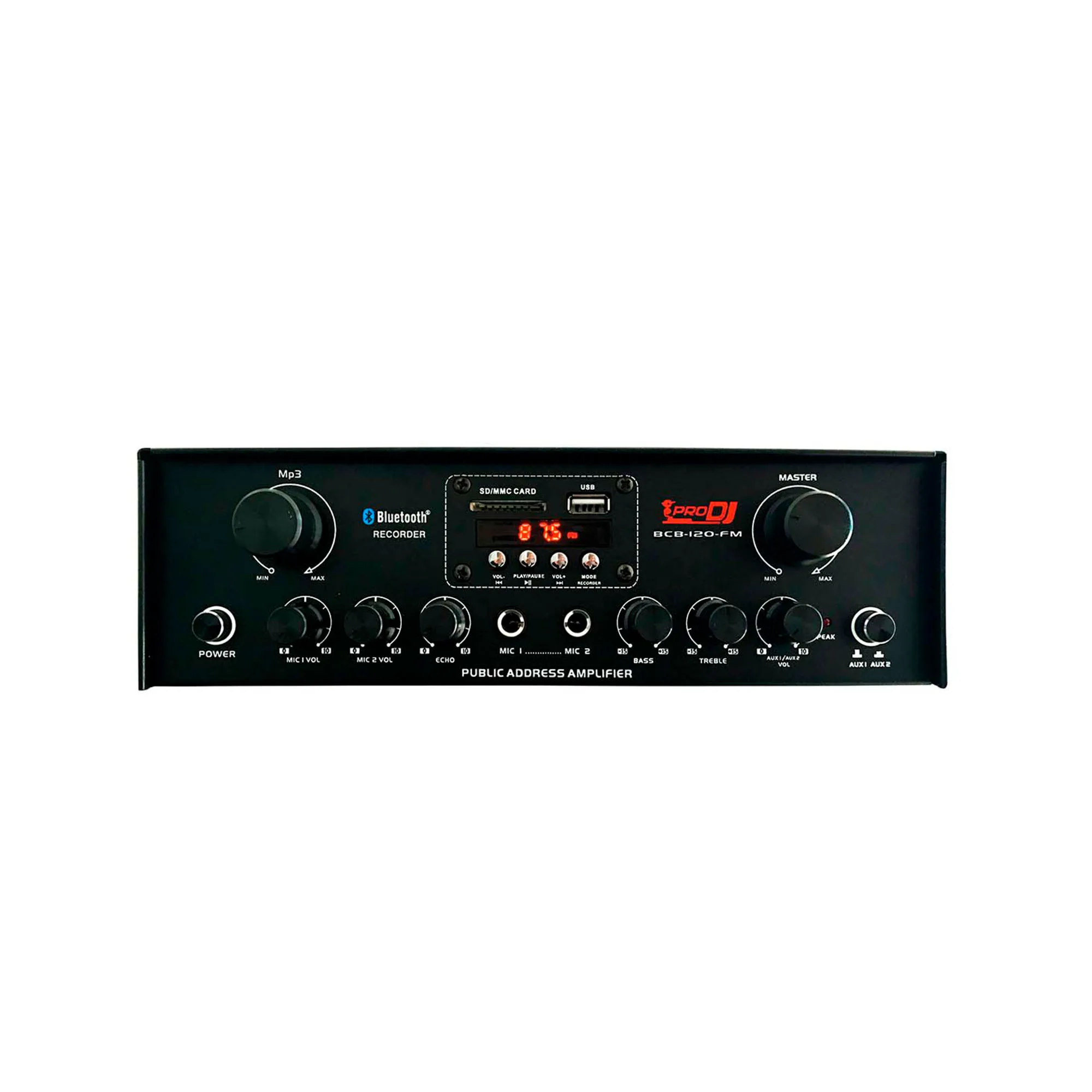 Usando el mini amplificador ambiental PRODJ BCB120FM tendrás soluciones para un limitado espacio de instalación con una gran versatilidad en conectividad como: entradas auxiliares, reproductor de memoria USB / SD, bluetooth y señal FM, además de entradas para que conectes micrófonos y así poder hacer anuncios a través de tu sistema de audio.